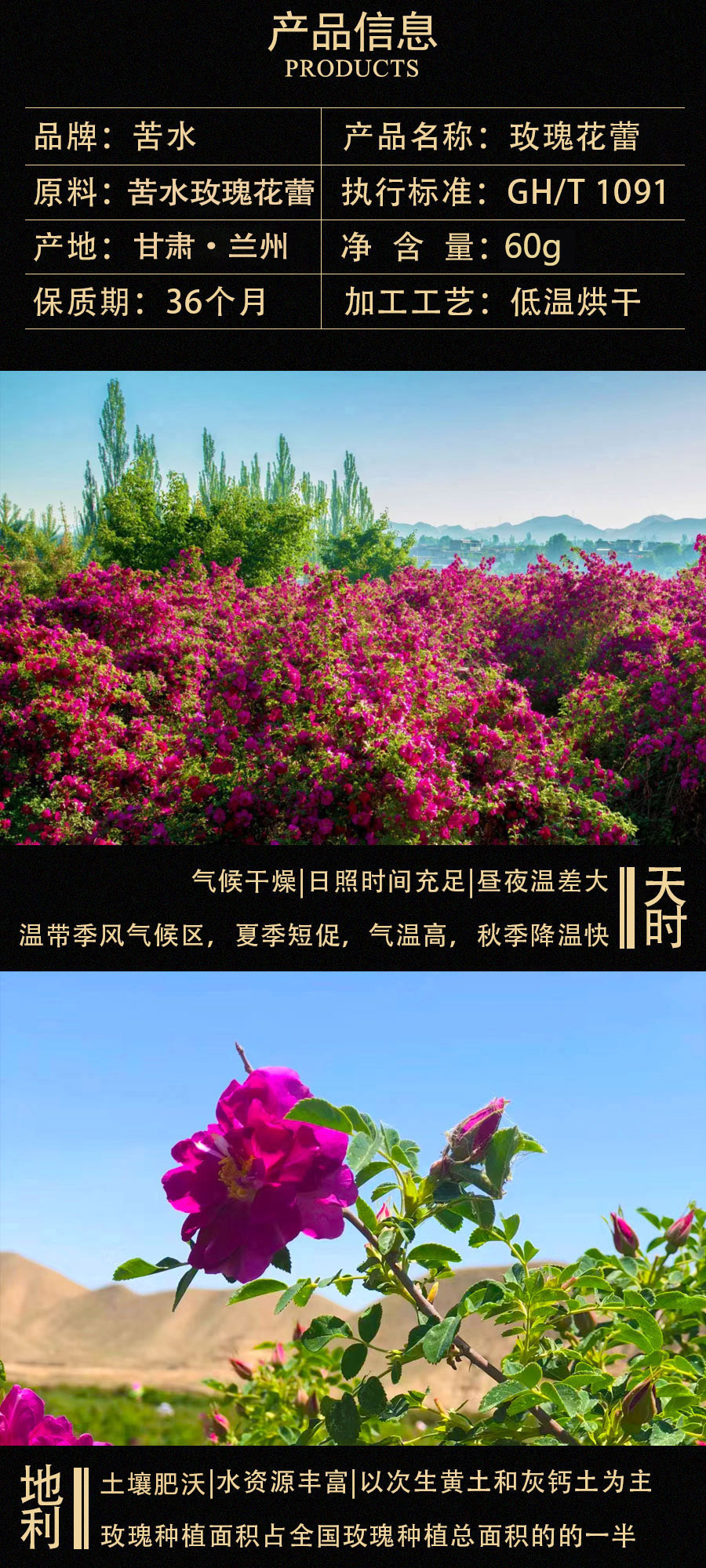 苦水牌玫瑰花蕾【烘干】【纸盒】60g