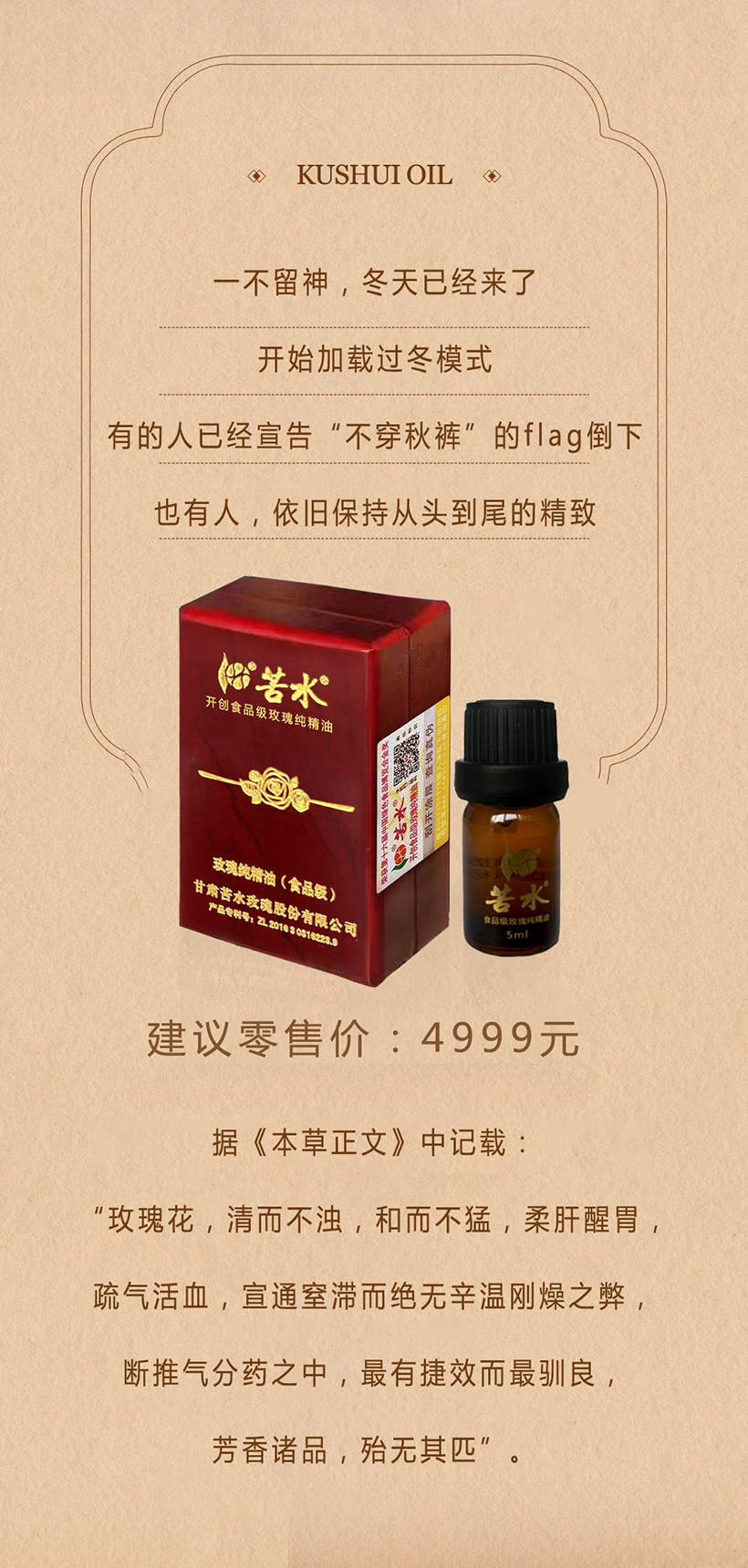 以蒸馏提取的苦水油滋养身心,让健康滋养永久守护 2023/11/24 15:17:05 来源: 作者: admin 上一个: 甘肃苦水,这地方的玫瑰为什么如此出名? 下一个: 甘肃苦水参加2023中国天津投资贸易洽谈会暨pecc博览会
