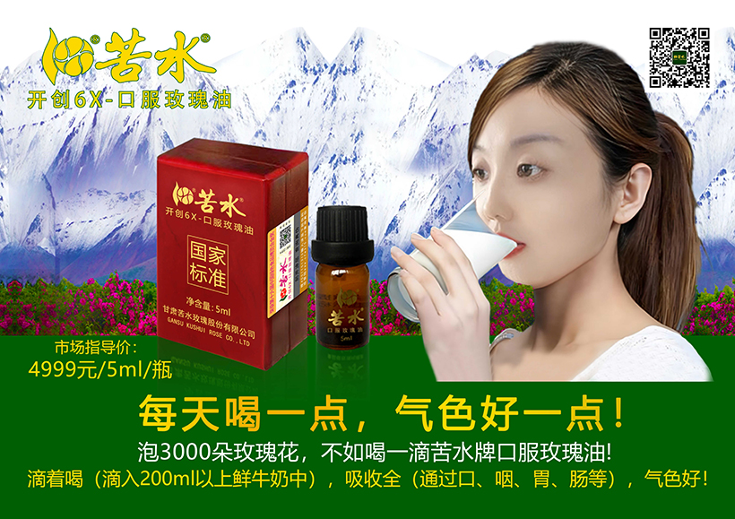 作为油玫瑰产业的标杆产品,苦水牌口服玫瑰油【4999元/5ml/瓶】素有“液体黄金”的美誉,源自“中国玫瑰之乡”——甘肃省兰州市永登县苦水镇。依托祁连山雪水的纯净滋养、北纬36度黄金种植带的独特地理优势,产品采用传统水蒸气蒸馏工艺与现代尖端技术完美融合的方式提取,每一滴都浓缩了数千朵玫瑰的天然养分,既保留了苦水镇油玫瑰的原生滋养功效,又严格遵循国际及国家相关标准,以卓越品质成为中国油玫瑰产业的核心标杆,彰显着苦水镇油玫瑰的深厚底蕴与产业实力。