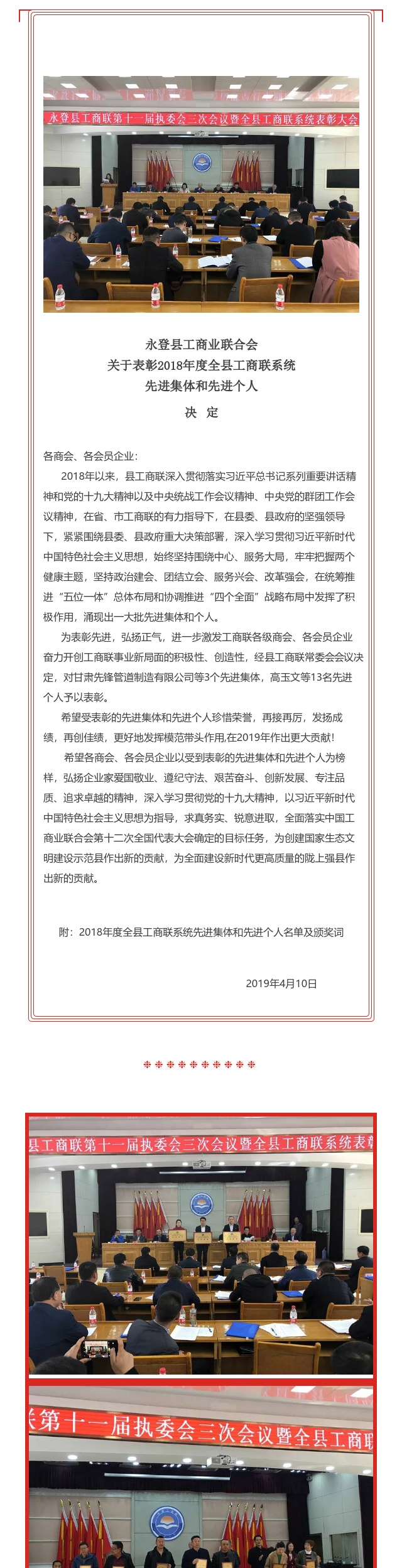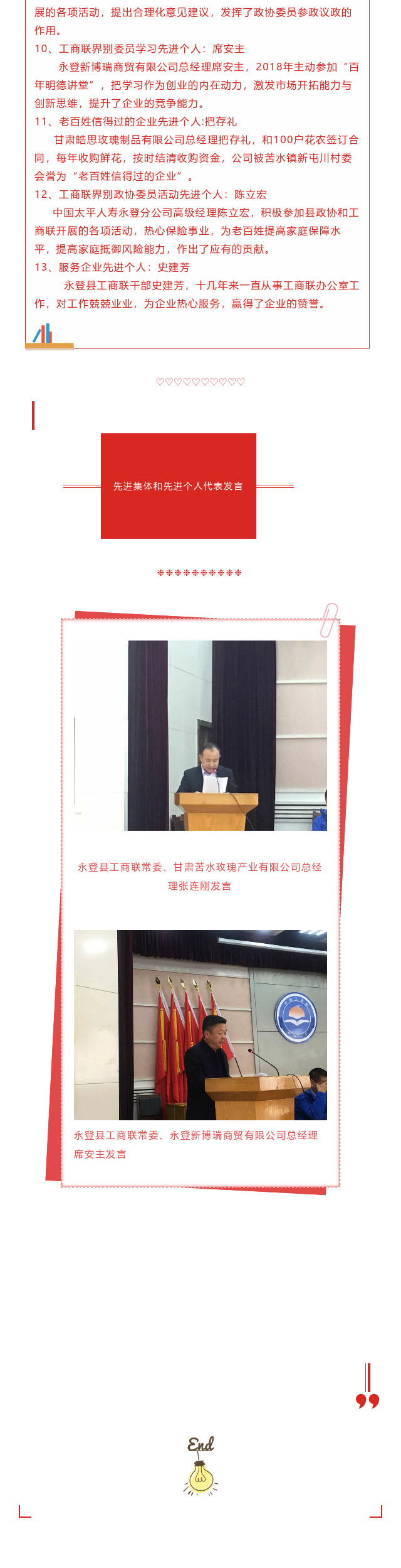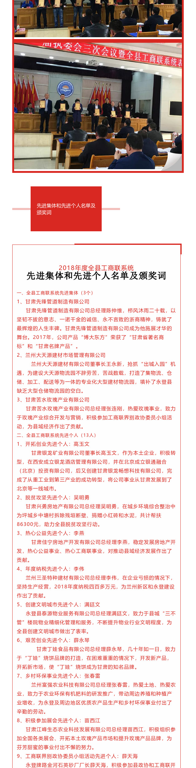 永登县工商联表彰2018年度全县工商联系统先进集体和先进个人 2019/7/29 13:27:59 来源: 作者: admin 上一个: 永登县工商联召开十一届执委会第五次常委会会议 下一个: 政协工商联界别委员小组开展“民企纾困行动”暨银企对接活动
